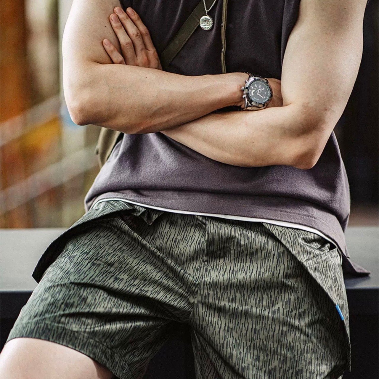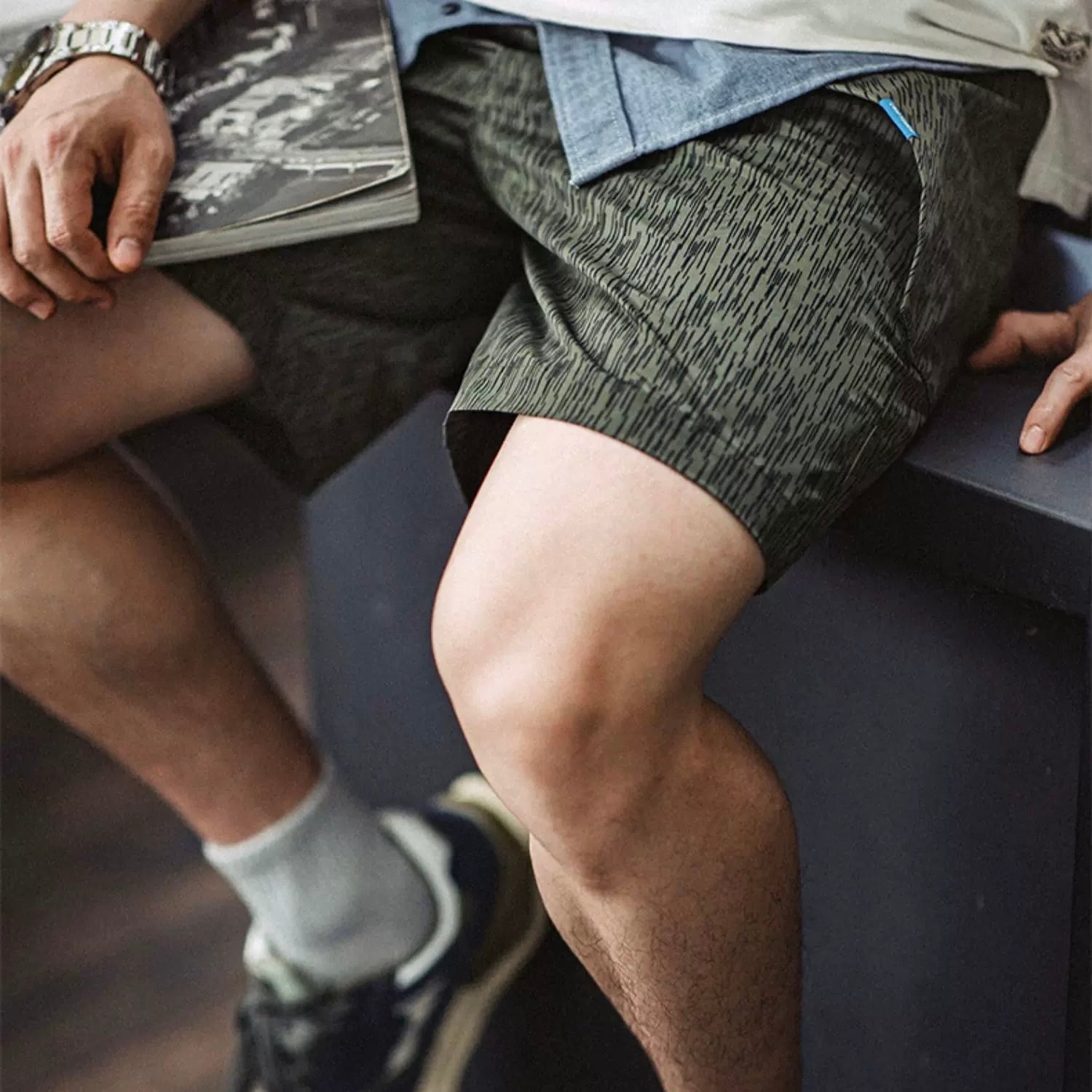 パターンが目を惹く、ルーズフィットのミドル丈ハーフパンツ。