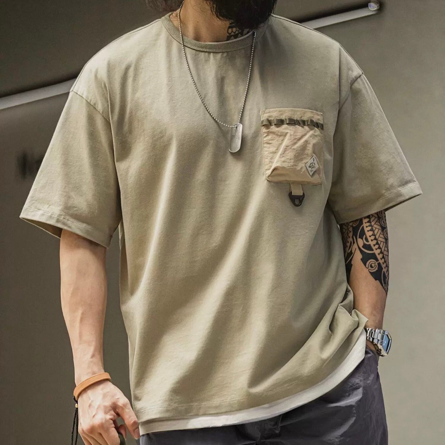 ボックスシルエットのショートスリーブクルーネックTシャツ。普段使いに最適な一枚です。さりげないアクセントとなる、機能的なデザインのポケットが魅力。シンプルながらも存在感のあるデザインで、様々なボトムスと合わせやすく、デイリーユースにぴったりです。