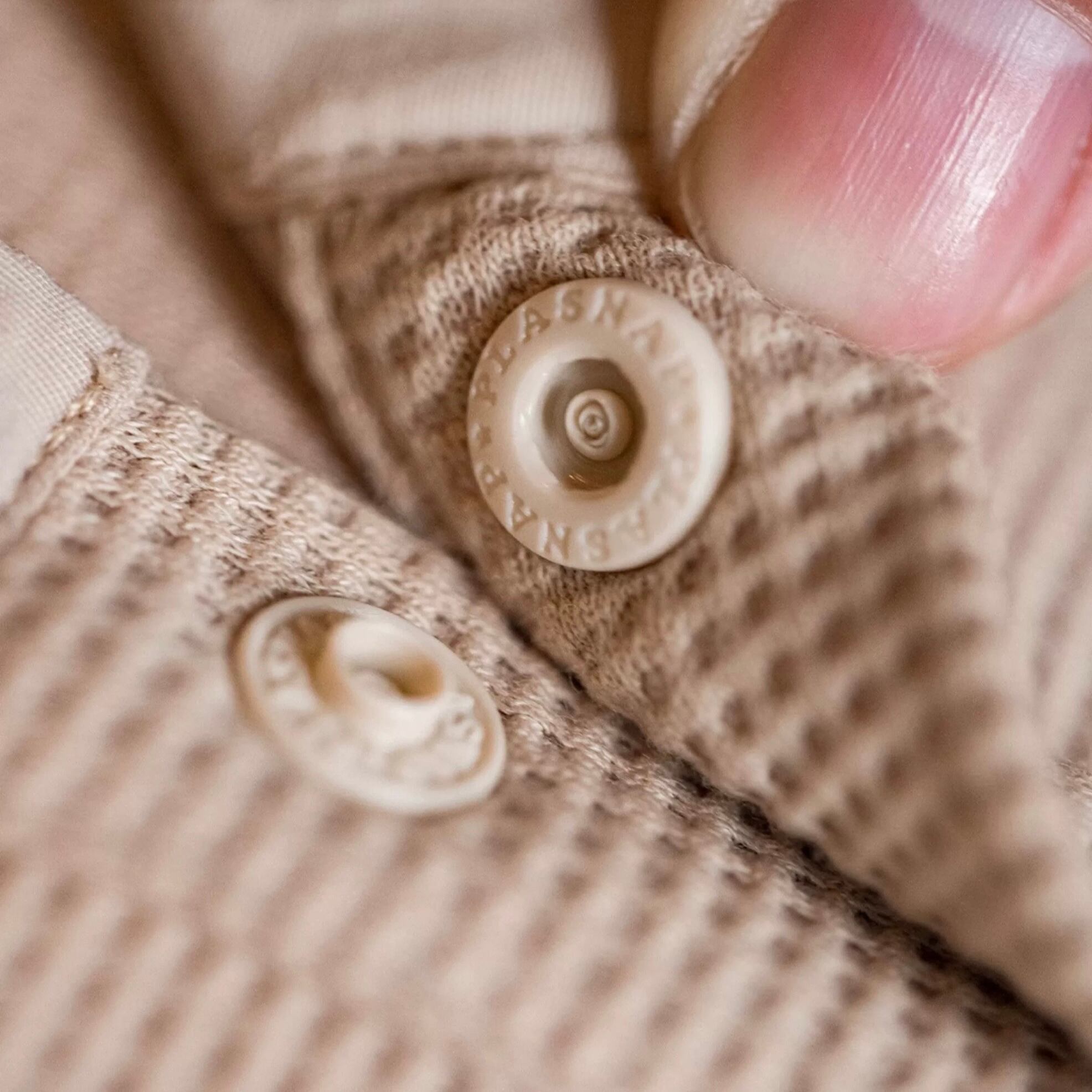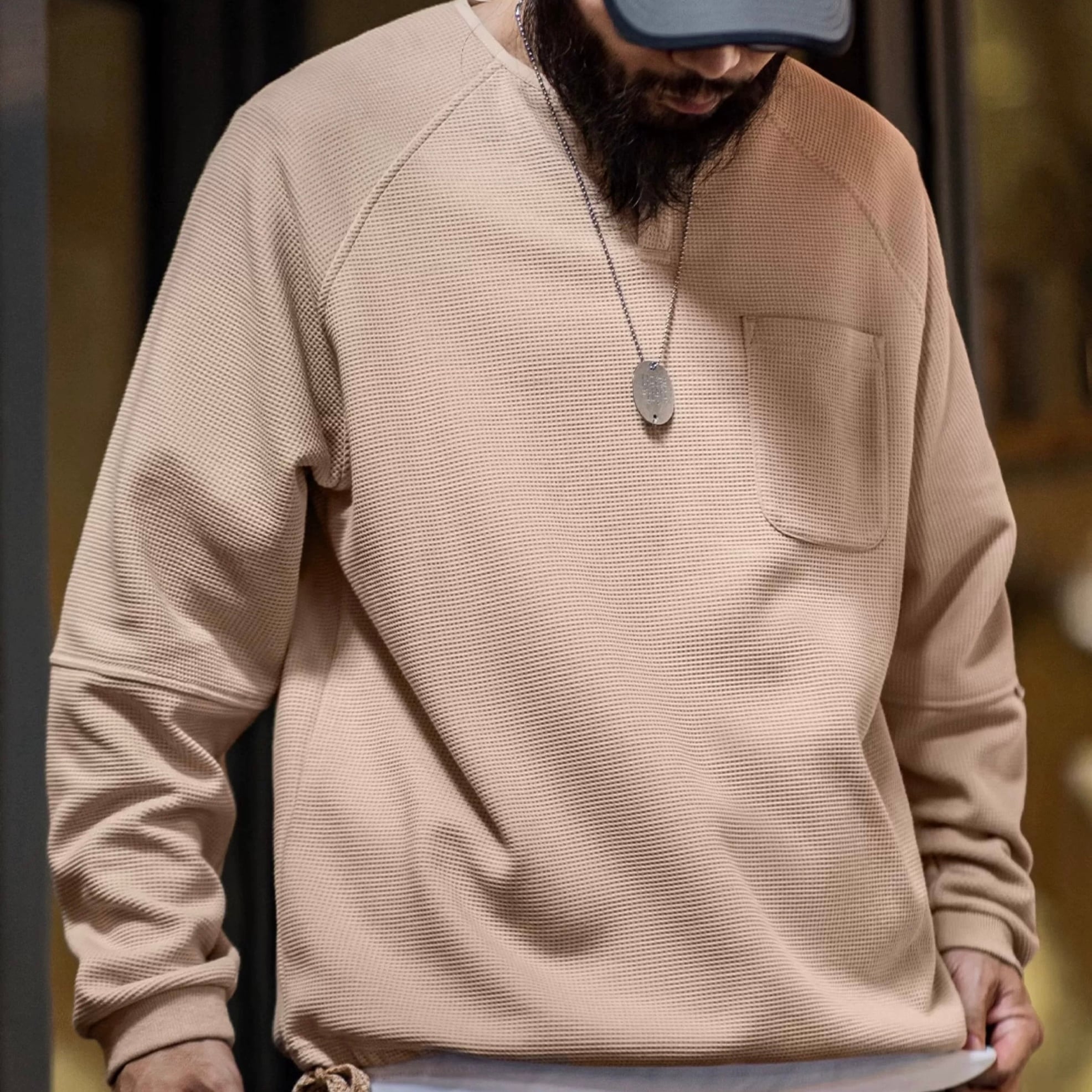 普段使いに最適なワッフル生地のヘンリーネックロングスリーブシャツ。程よくゆったりとしたシルエットで、リラックスした着心地を実現しました。シンプルなデザインながらも、ヘンリーネックがさりげないアクセントとなり、様々なボトムスと合わせやすい汎用性の高さが魅力です。一枚で着ても、重ね着しても様になる、デイリーユースに最適なアイテムです。