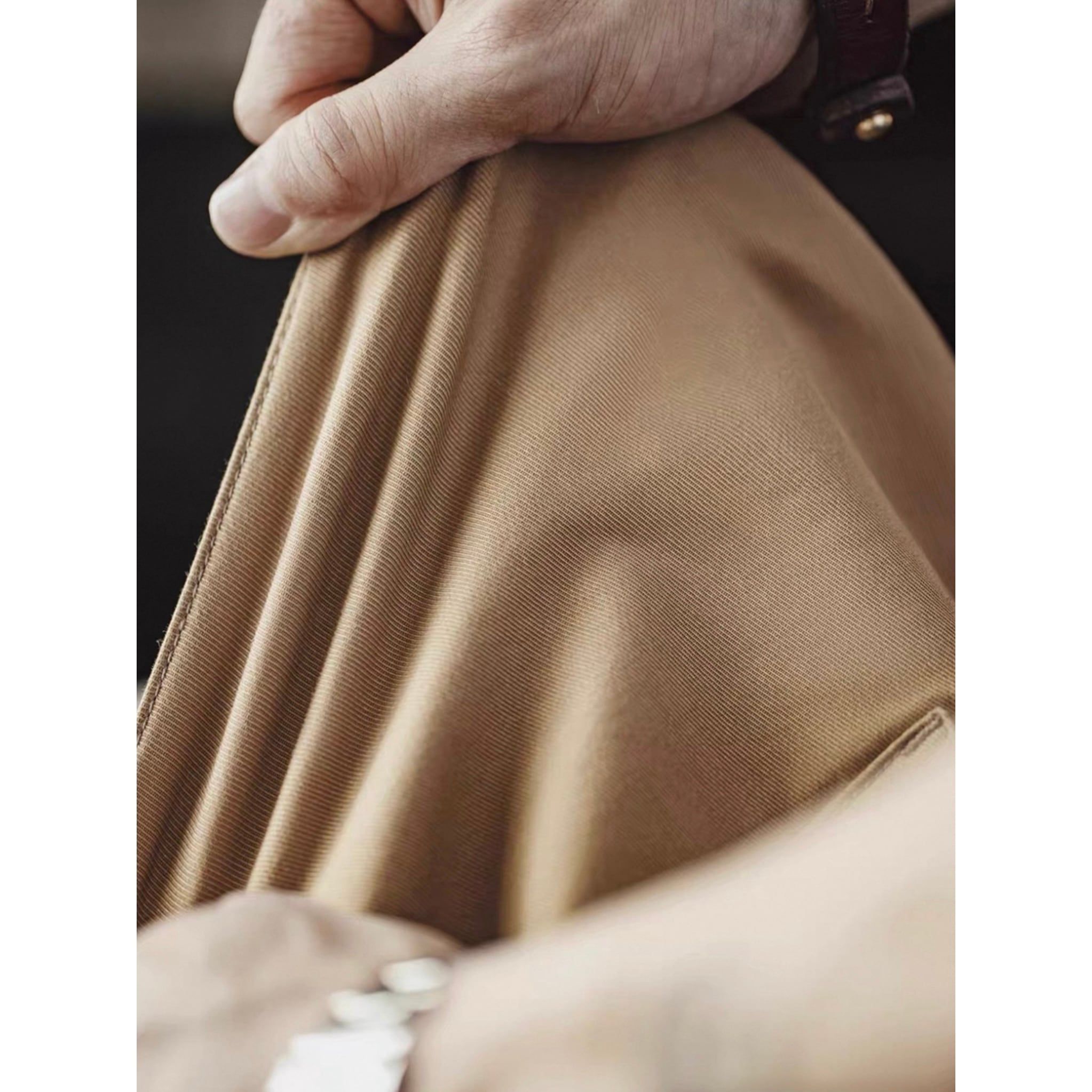 立体感のあるワイドシルエットが特徴で、裾にかけての自然なテーパードが脚をすっきり見せてくれます。