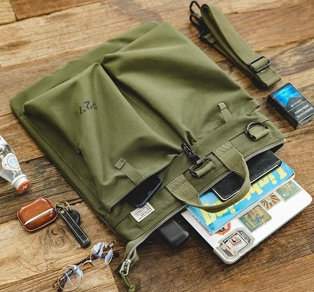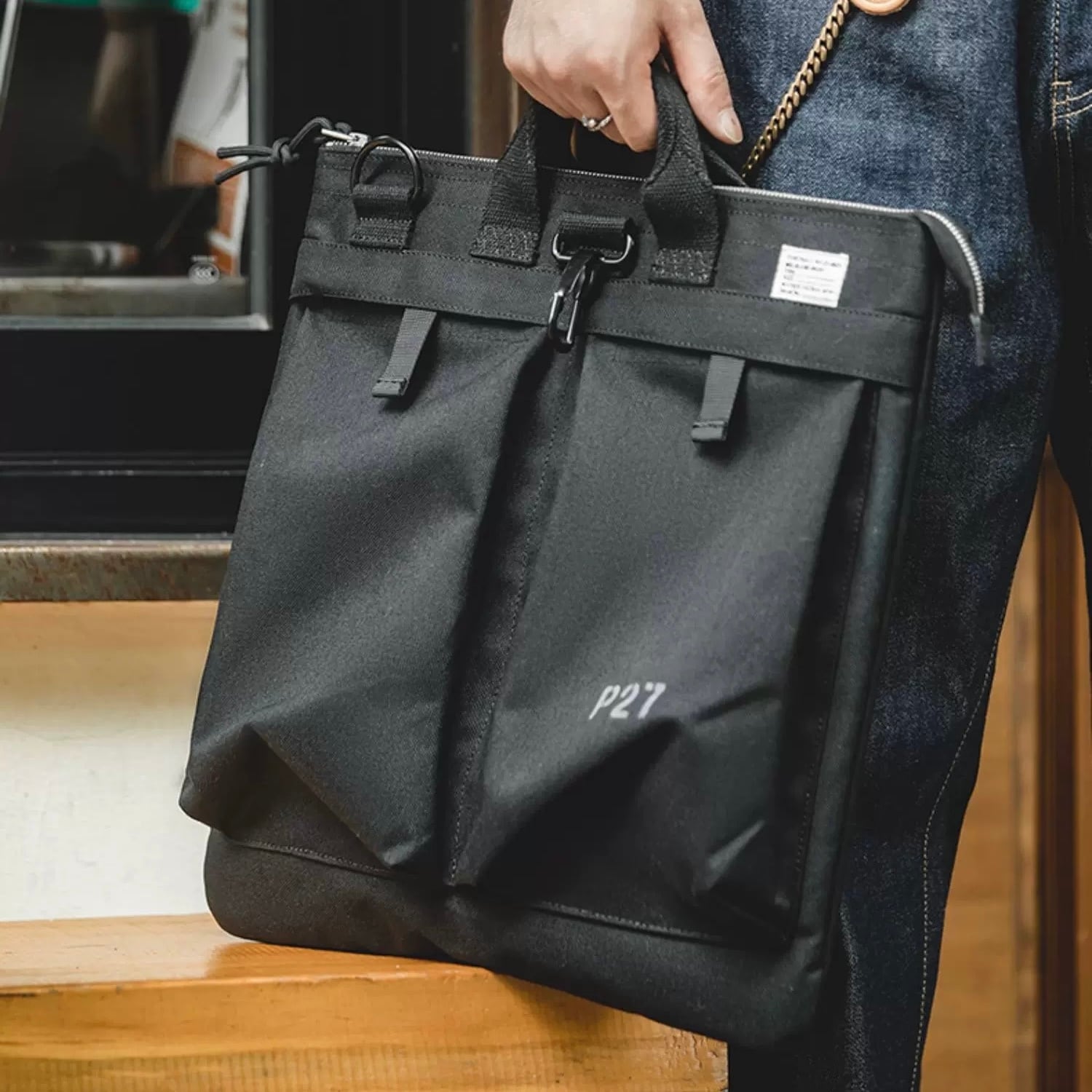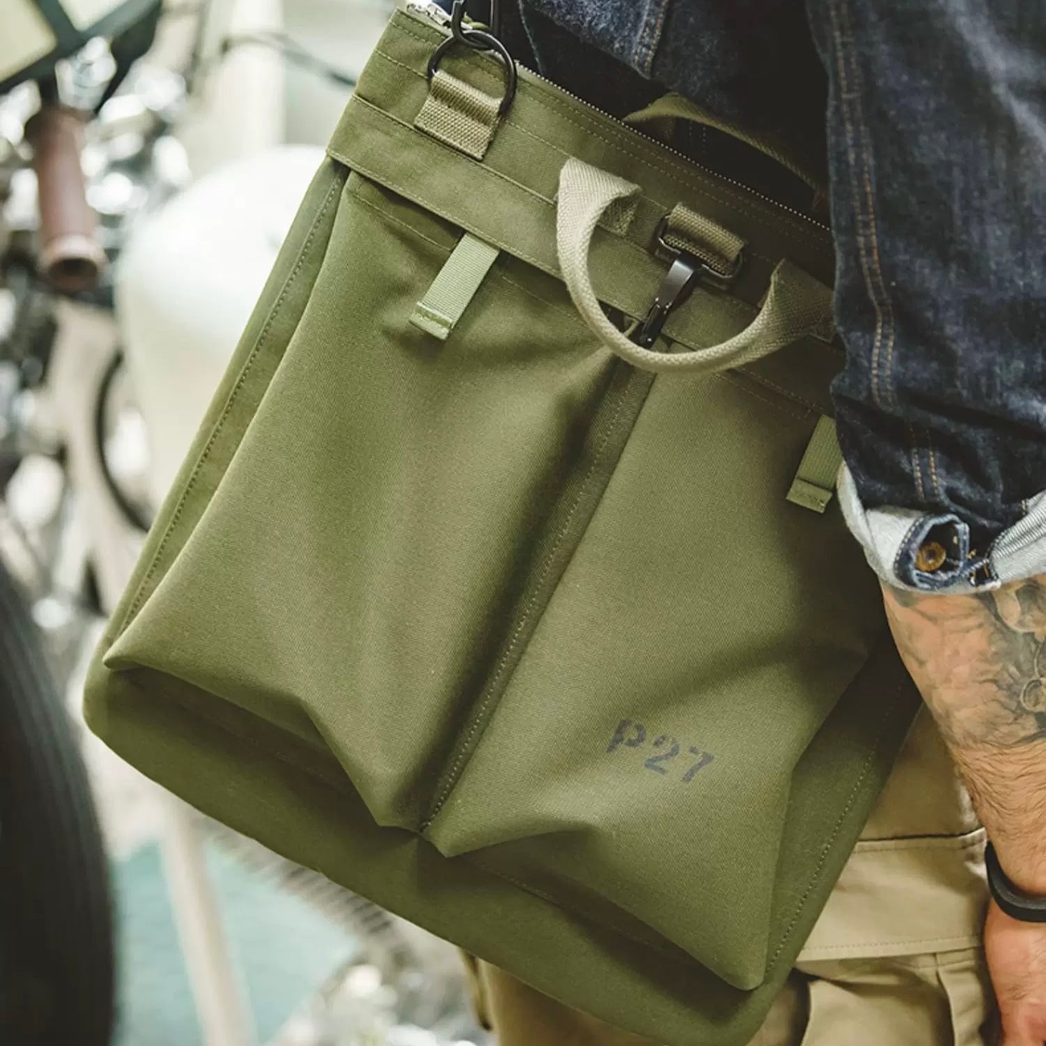 無骨なミリタリーデザインをベースに、都会的な機能美をプラスしたフィールドトートバッグ。