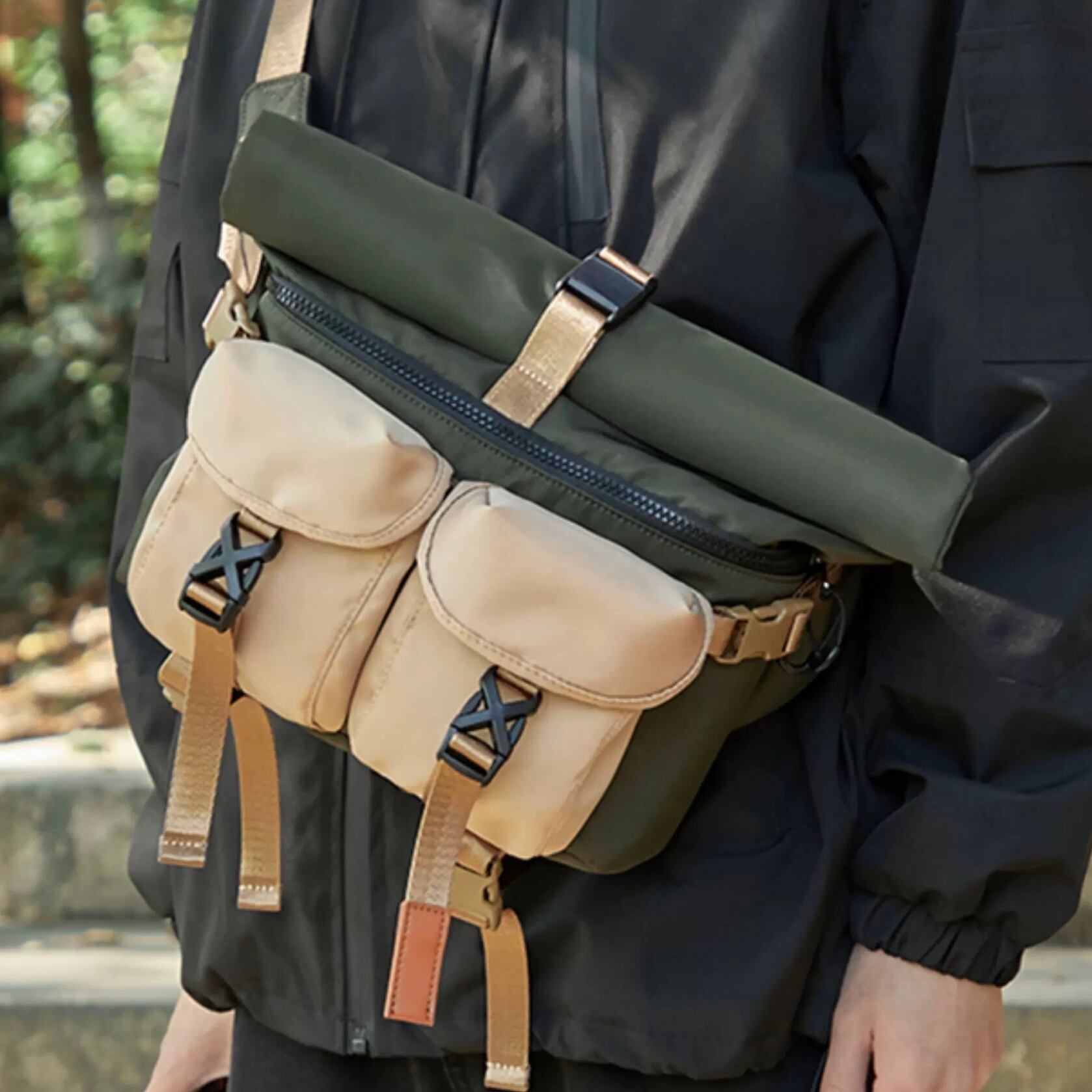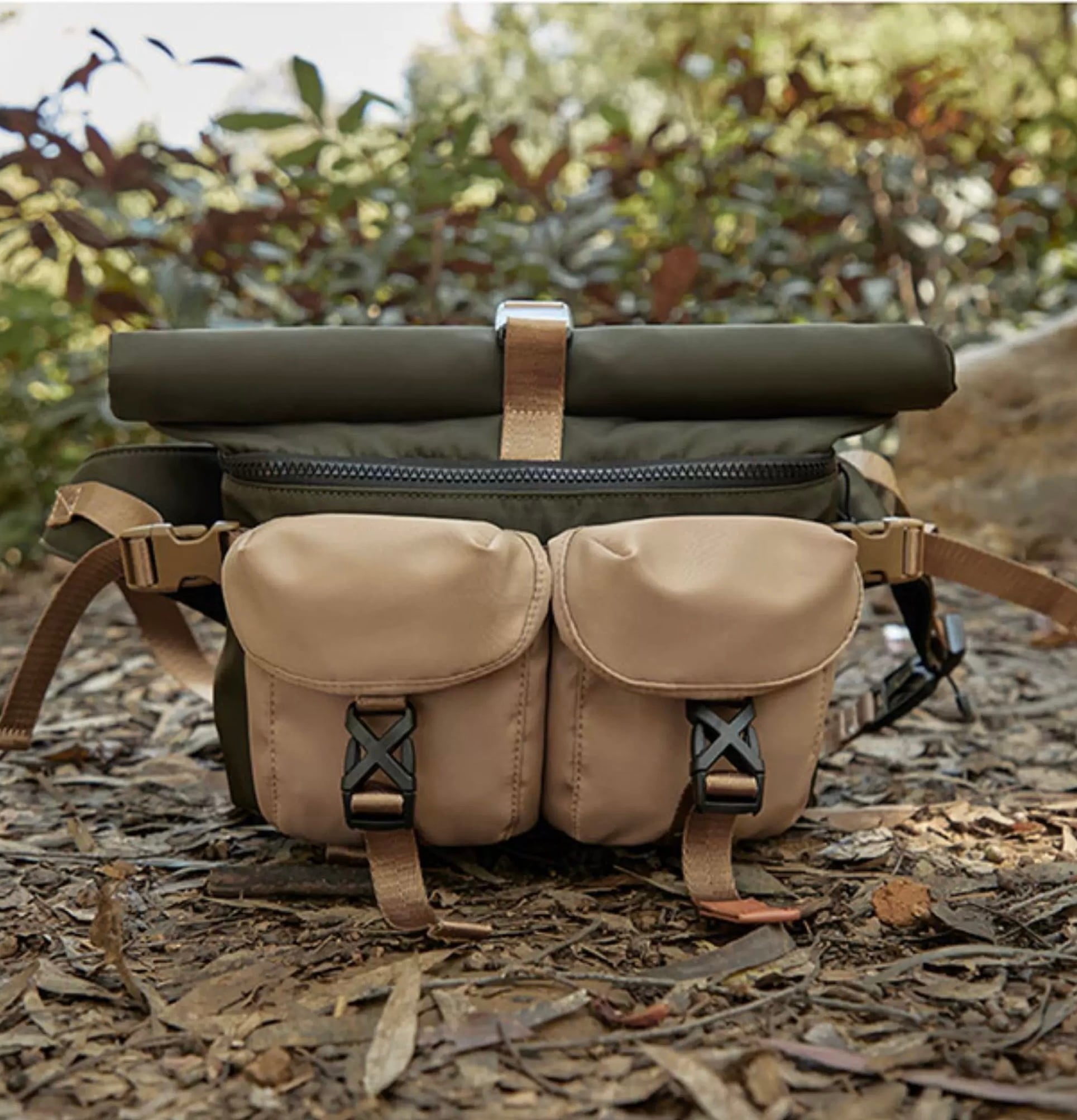 トップ部分はロール仕様で容量調整ができ、荷物の多い日やアウトドアシーンにも柔軟に対応します。