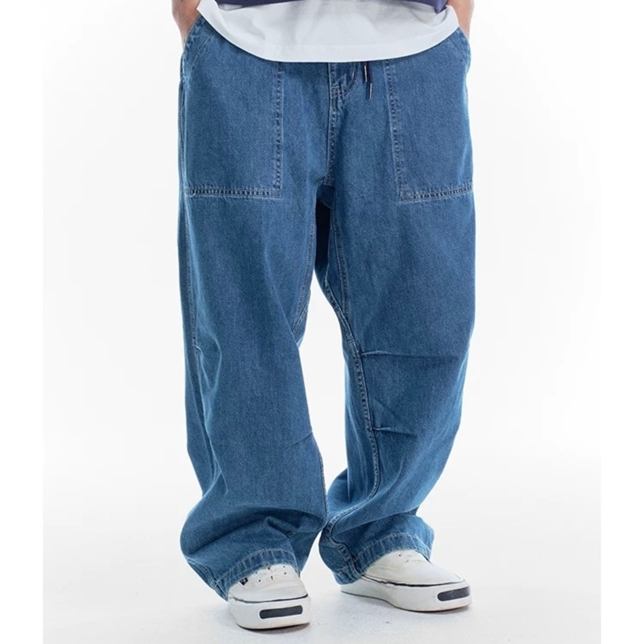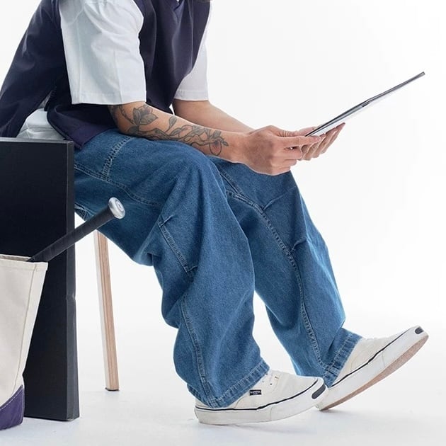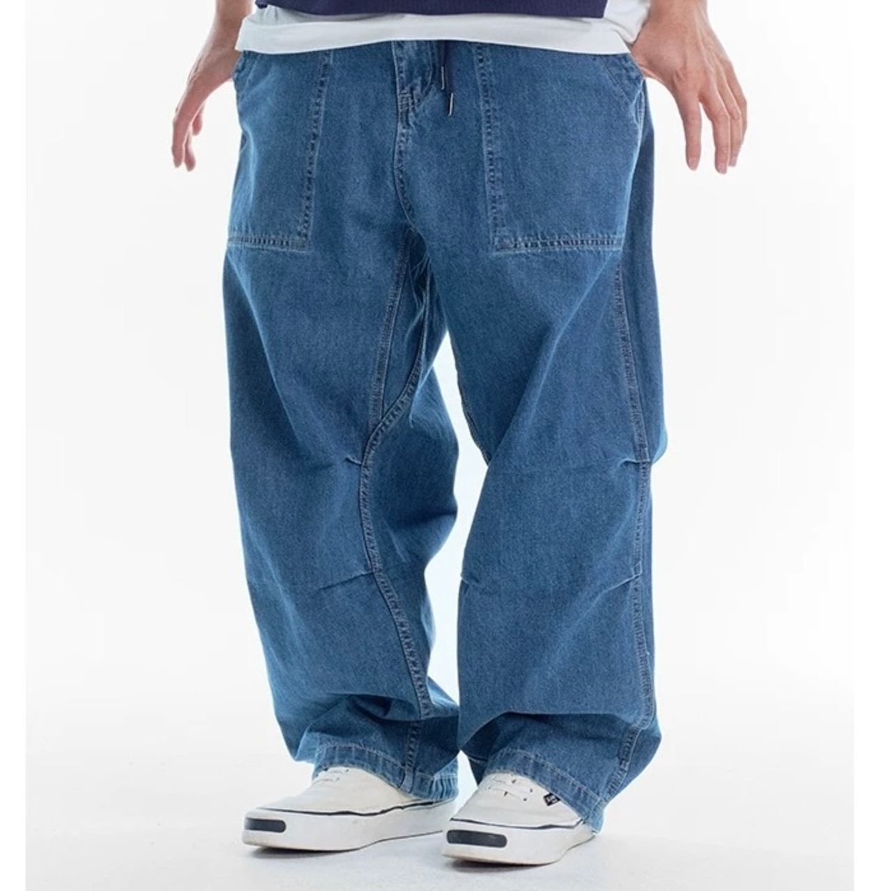 ゆったりとしたシルエットが魅力のワイドレッグデニムパンツ。