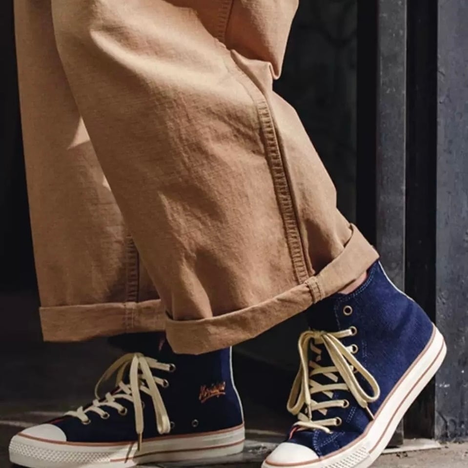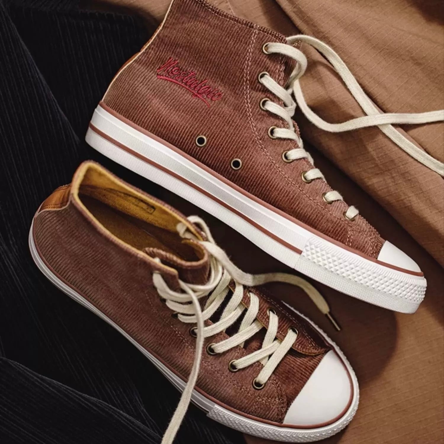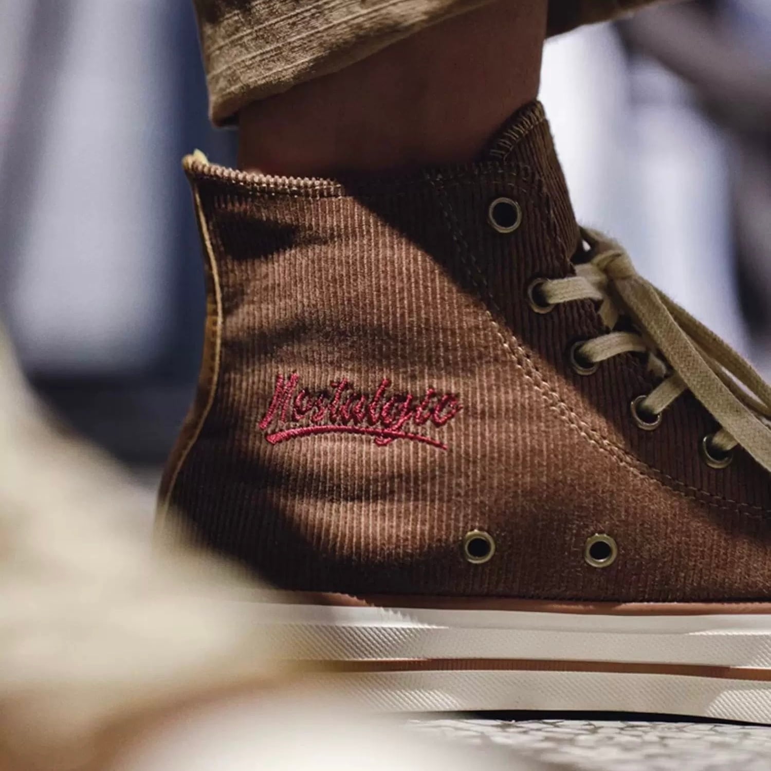 コーデュロイ素材のハイカットスニーカーは、カジュアルなスタイルに上品さをプラスする一足です。